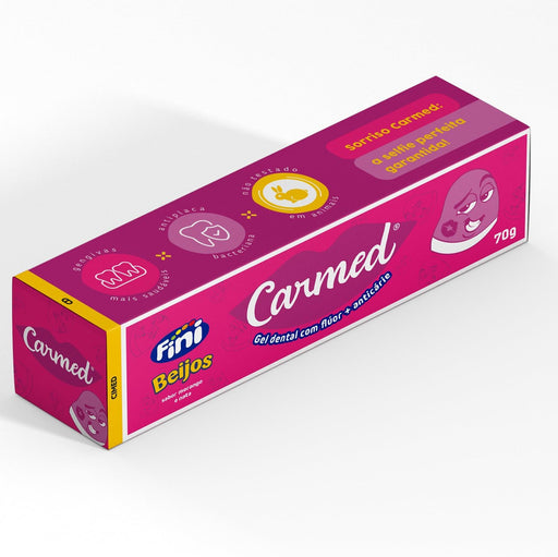 Ver todos os detalhesO Carmed Fini Beijos Gel Dental é um gel dental com sabor inspirado na bala Fini Beijos, trazendo um toque doce e divertido para a rotina de higien...