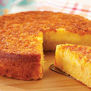 Macio, úmido e com aquele sabor caseiro que traz lembranças do café da tarde na casa da vó! O bolo de mandioca é feito com mandioca de verdade e coco, resultando em uma textura cremosa por dentro e douradinha por fora — impossível resistir ao primeiro pedaço.