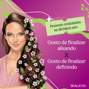 O Dona Skala foi formulado especialmente para você ondulada que busca um produto para ser seu aliado. Com seu poderoso complexo de óleos vegetais ajuda a fortalecer e dar brilho aos fios. E o mais INCRIVÉL de tudo está por vir, pode ser utilizado como Creme de Tratamento e Creme para Pentear. É só passar e deixar o dia todo.