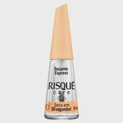 Risqué Care's Express Secante helps nail polish dry faster. In 50 seconds, it prevents dust, scratches, and surface smudges. Liquid sensory with a non-greasy texture.