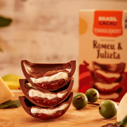 Milk chocolate egg with double guava filling and cheese flavored filling on the same band, bringing the sensory combination of Romeo and Juliet in every bite!