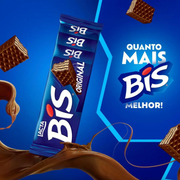 O desafio ao abrir uma caixa de chocolate Bis é comer só um! Afinal, quem resiste ao wafer crocante coberto com chocolate ao leite Lacta? A caixa com 20 unidades emabaladas individualmente é perfeita para dividir com os amigos e a família. Todo mundo come um, e ainda pede Bis.